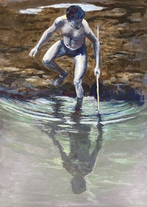 2021Reflexie van een jongen met stok
